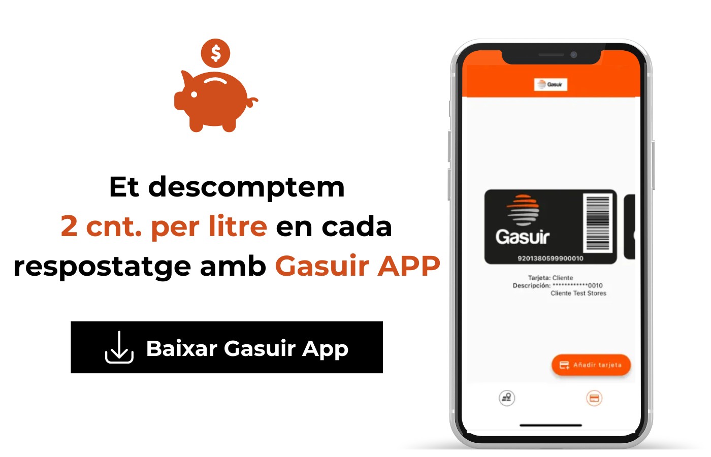 Aprofita el descompte de 5 cèntims per litre en cada respostatge ensenyant la teva Gasuir App a totes de les estacions de servei Gasuir.